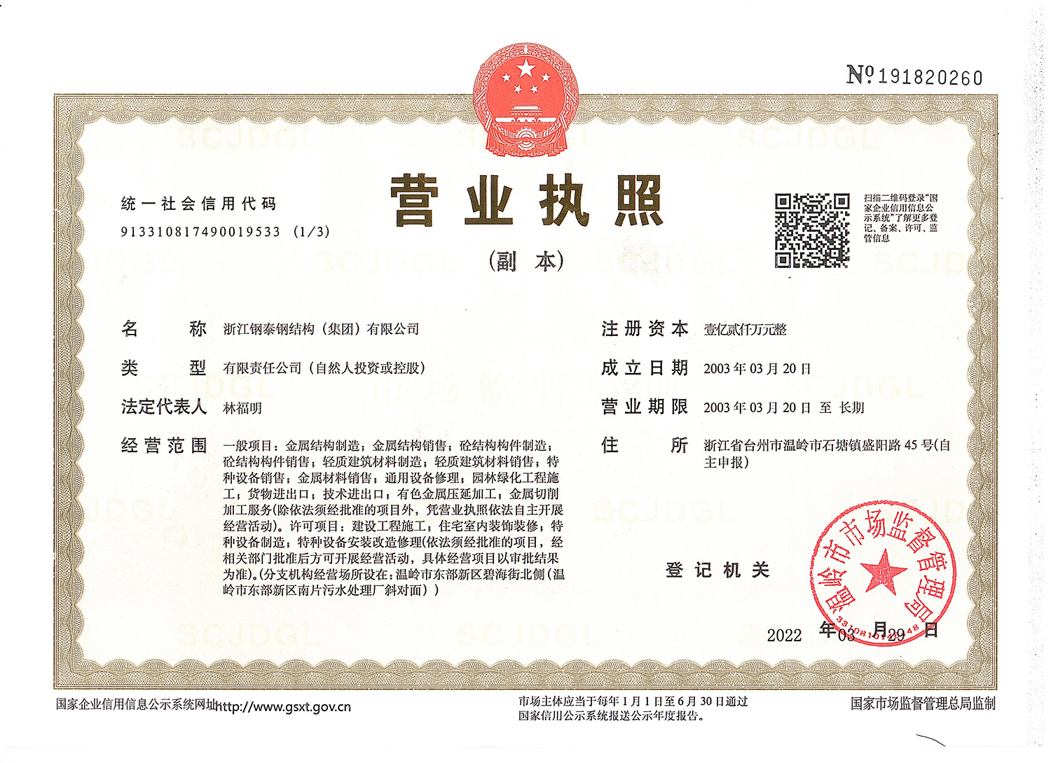 作為集設(shè)計(jì)、制造、安裝、服務(wù)于一體的鋼結(jié)構(gòu)領(lǐng)域企業(yè),鋼泰鋼構(gòu)擁有完備的資質(zhì)資格證書,確保了公司從技術(shù)研發(fā)、產(chǎn)品制造、施工安裝到售后服務(wù)的規(guī)范、優(yōu)質(zhì)與高效。